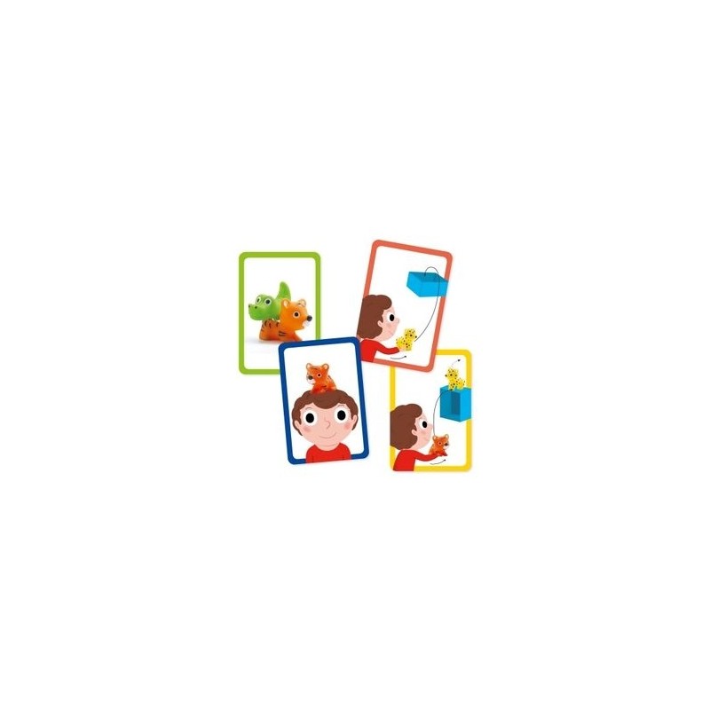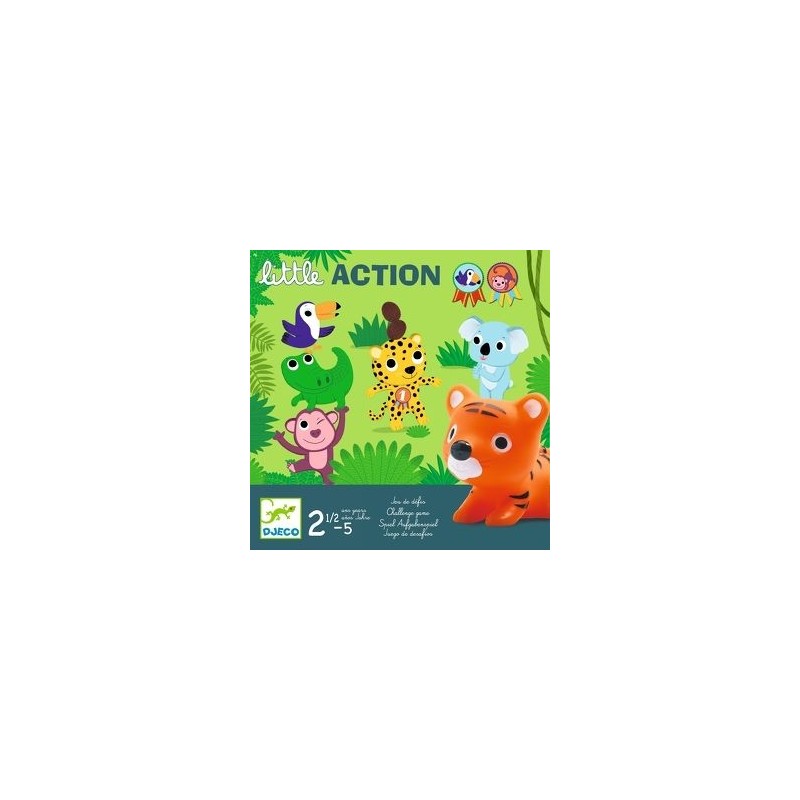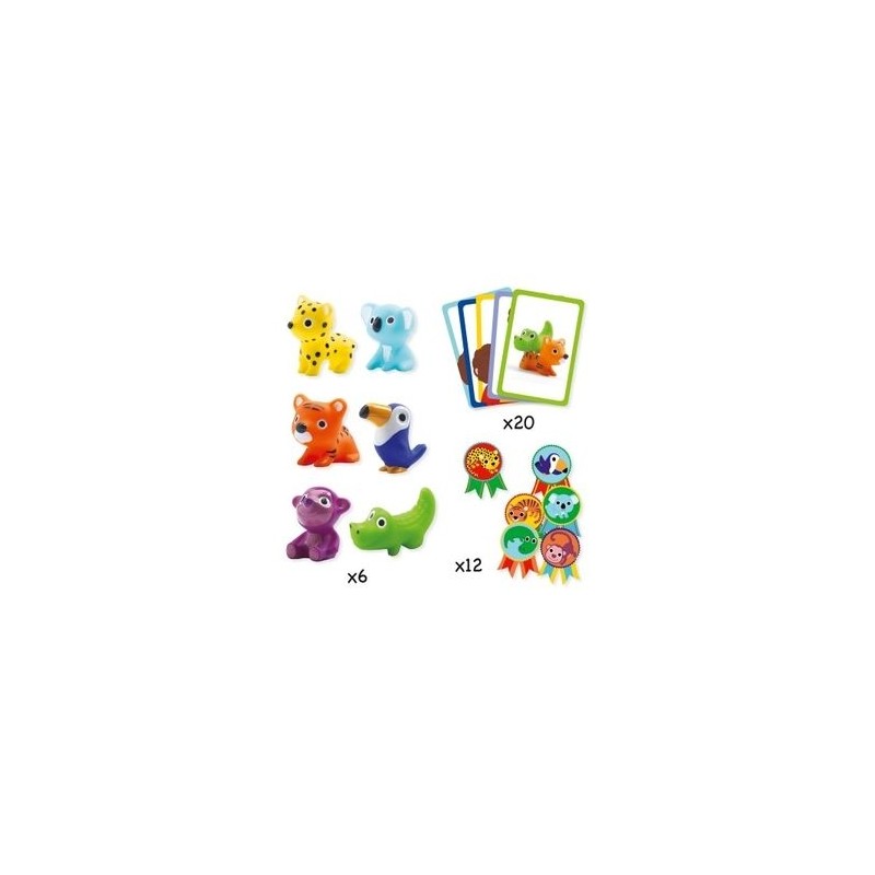 Un jeu d'action spécialement conçu pour les tout-petits dès 2 ans ½. C'est la fête dans la jungle ! Construire une pyramide, jouer aux quilles, lancer et attraper les animaux... Autant de défis à réussir pour gagner des médailles et remporter la partie ! L'enfant suit les cartes défis et remporte les missions en jouant avec les adorables animaux en plastique souple.