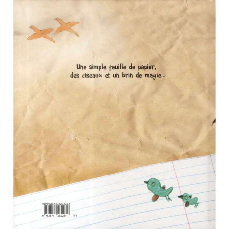 Une grand-mère donne à sa petite-fille une feuille de papier en prétendant qu’elle est magique. Mais la petite fille a beau écrire, dessiner… Rien ne se passe. Où est donc la magie, dans cette feuille ? La grand-mère prend la feuille, la plie savamment et réalise une cocotte en papier. « Mais elle n’est pas magique, mamie ! » Alors, la grand-mère souffle sur la cocotte qui se met à remuer les ailes… Et c’est, pour la petite fille, l’émerveillement, la découverte progressive de la magie de l’imaginaire : comment une simple feuille de papier peut-elle devenir un personnage, une histoire, un univers… Après tout, un livre, un album, ce n’est pas seulement la somme de mots et d’images, c’est aussi et surtout une histoire que chaque lecteur se crée au gré de son imagination. Pour paraphraser Magritte : « ceci n’est pas une cocote en papier ; c’est un oiseau, et il vole ».