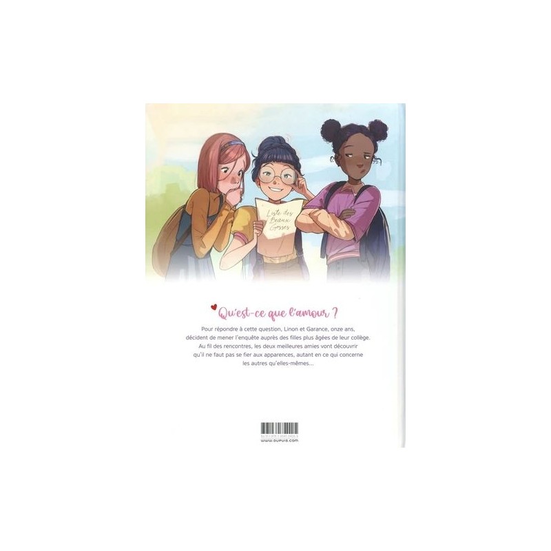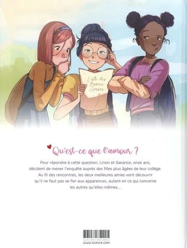 Garance, déjà cynique à 11 ans, et son amie Linon, qui a un crush pour Noa, un garçon imprévisible, se posent beaucoup de questions sur l'amour. Elles décident de mener une vaste enquête auprès des grandes de l'école, telles Enjoy Parasol, la fille la plus canon de l'école, ou Adèle, la gothique rebelle qui traîne une réputation de "fille facile". De nombreuses surprises les attendent, qui vont les forcer à apprendre à voir au-delà des apparences. Et à découvrir que même les deux meilleures amies du monde peuvent avoir des secrets l'une pour l'autre.