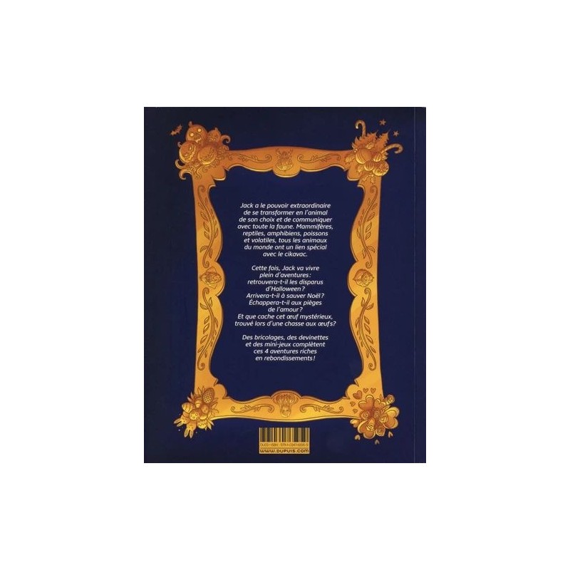 À travers quatre histoires courtes, Jack nous emmène dans des aventures surprenantes, éducatives et drôles : que ce soit pour conseiller une castor trop romantique dans ses histoires de cœur, enquêter sur la disparition des villageois lors de la nuit d'Halloween, comprendre pourquoi le père Noël n'a pas distribué de cadeaux ou tenter de casser un œuf de Pâques particulièrement récalcitrant, les aventures de Jack sont toujours l'occasion de répéter les valeurs de respect de la différence et de protection de la nature. Cet album offre également de nombreux bonus : jeux, pages pédagogiques ou cours de dessin.