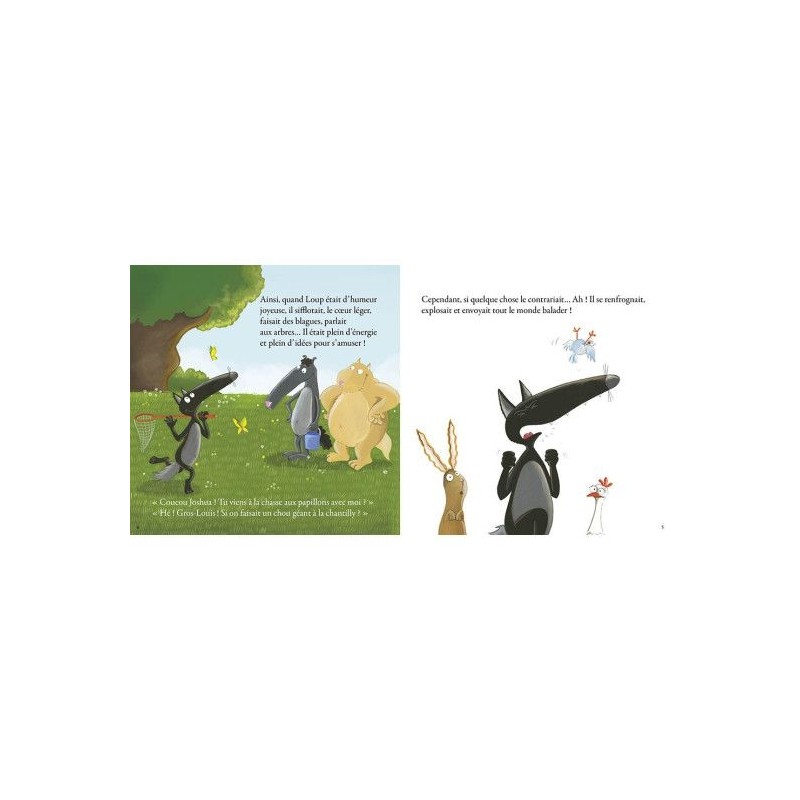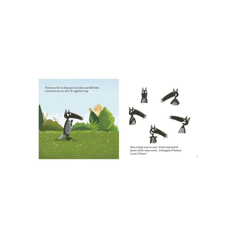 Joyeux, triste, excité, jaloux Loup change d'humeur à cent à l'heure. Avec lui, ses amis finissent par avoir le tournis ! Loup n'a pas le choix : il doit apprendre à se calmer. Oui, mais comment ?