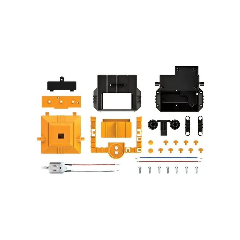 Contient 1 ensemble de pièces de banque en plastique, moteur, fils, 10 vis, bouchons de borniers, engrenages et instructions détaillées. Obligatoire mais non inclus dans le kit : un petit tournevis à traverse et 1 pile AA.