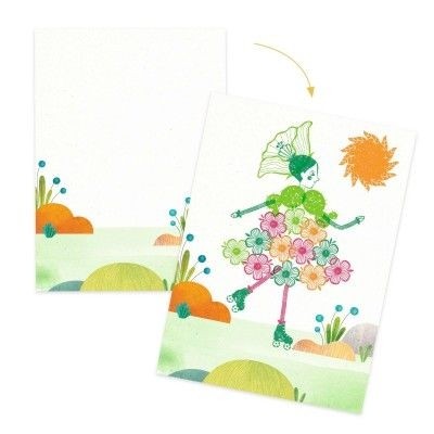 Un coffret de tampons où l'enfant compose ses propres personnages en associant les formes et variant les couleurs pour créer de jolies tenues fleuries. Progressivement, il encre les tampons et marque les empreintes pour animer les décors proposés. L'enfant s'amuse à modifier les combinaisons en laissant libre cours à son imagination. Toujours différentes, les décors prennent vie !