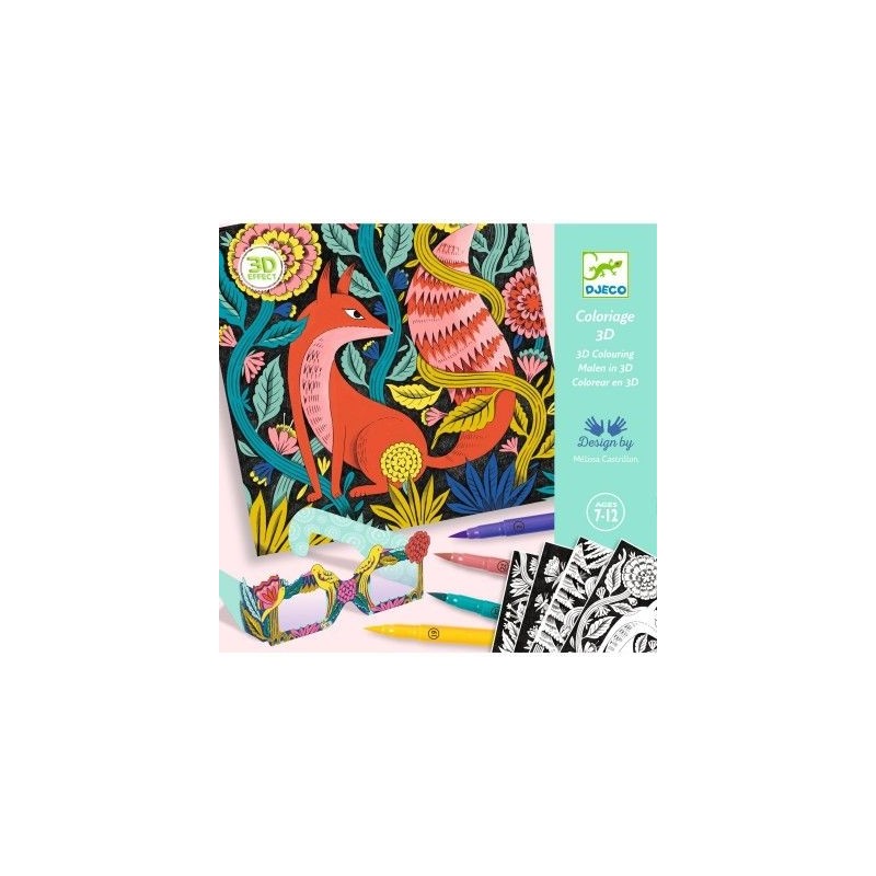 Un coffret de coloriage sur le thème de la forêt comprenant 4 tableaux à compléter. Muni de ses feutres pinceaux, l'enfant suit pas à pas les indications de l'artiste pour mettre les illustrations en couleurs. Une fois l'activité terminée, il chausse ses lunettes 3D... Stupéfiant ! Les illustrations prennent vie : les couleurs chaudes apparaissent au premier plan et les froides sur le fond.