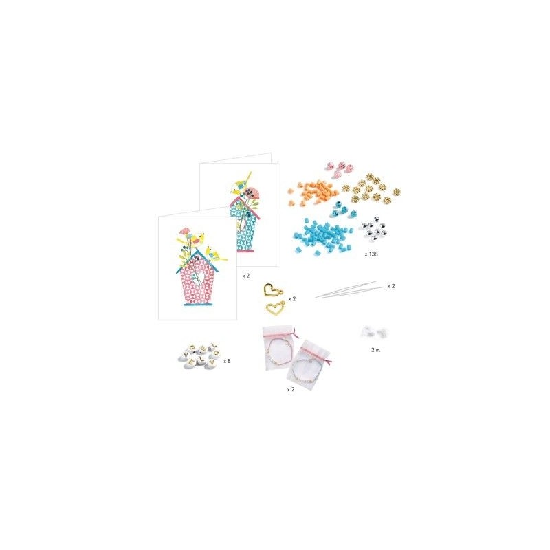 Dans une jolie boite brillante, des perles alphabet et des charms pour créer de jolis bijoux avec des prénoms ou des messages. 2 bijoux à conserver ou à offrir dans un joli sac en organza. Et pour encore plus de souvenirs, deux cartes illustrées sont incluses pour inscrire des mots doux.