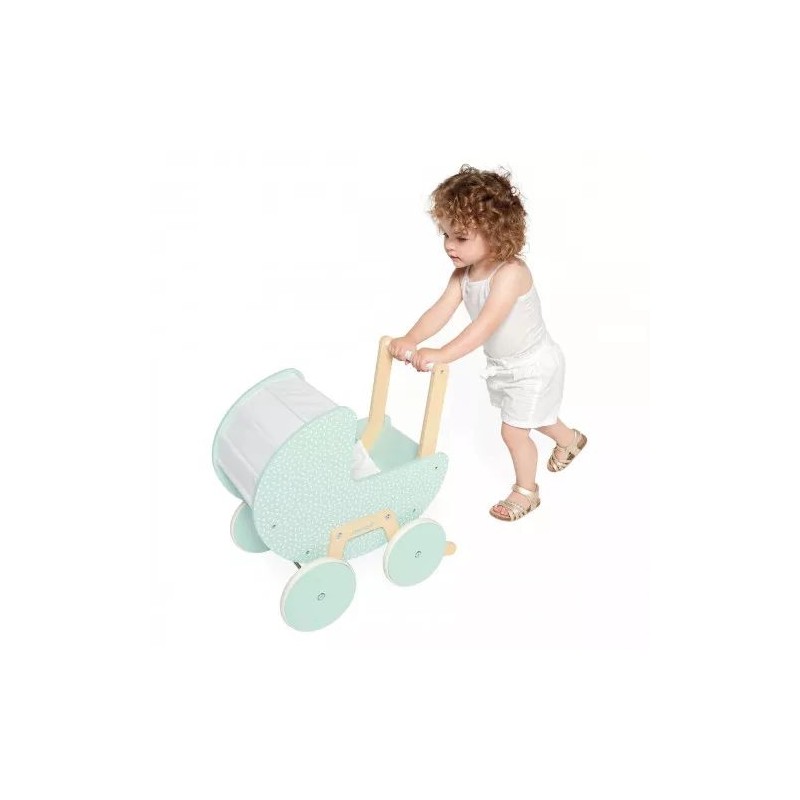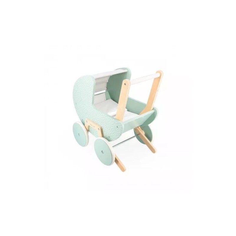 En route pour une promenade avec bébé ! Ce landau en bois est l'accessoire indispensable des apprentis parents qui prennent plaisir à balader leur poupon favori dans toute la maison. Compatible avec les poupons jusqu'à 42 cm (non fourni), ce jouet d'imitation accueille volontiers les doudous ou les petits trésors des petits dès 18 mois. Une couverture et un oreiller sont inclus pour un confort optimal. Avec sa capote en tissu et sa couleur pleine de fraîcheur, ce landau pour poupon est un incontournable pour prendre soin de ses jouets et imiter papa ou maman. On installe sa poupée préférée, on prépare son goûter et c'est parti pour la promenade ! Ce landau pour enfant est un beau support d'aide à la marche pour les petits : il est équipé d'un système anti-bascule qu'on peut retirer quand l'enfant est suffisamment à l'aise et ses roues en caoutchouc sont silencieuses. Cette jolie poussette est issue de la gamme de mobilier pour poupons et poupées Zen de Janod. Elle est fabriquée en bois FSC®. Pour imiter les plus grands qui prennent soin des plus petits ou pour apprendre à marcher, voilà un landau qui fera craquer les tout-petits !