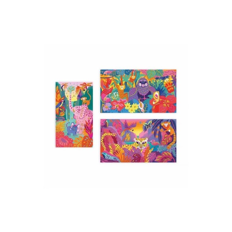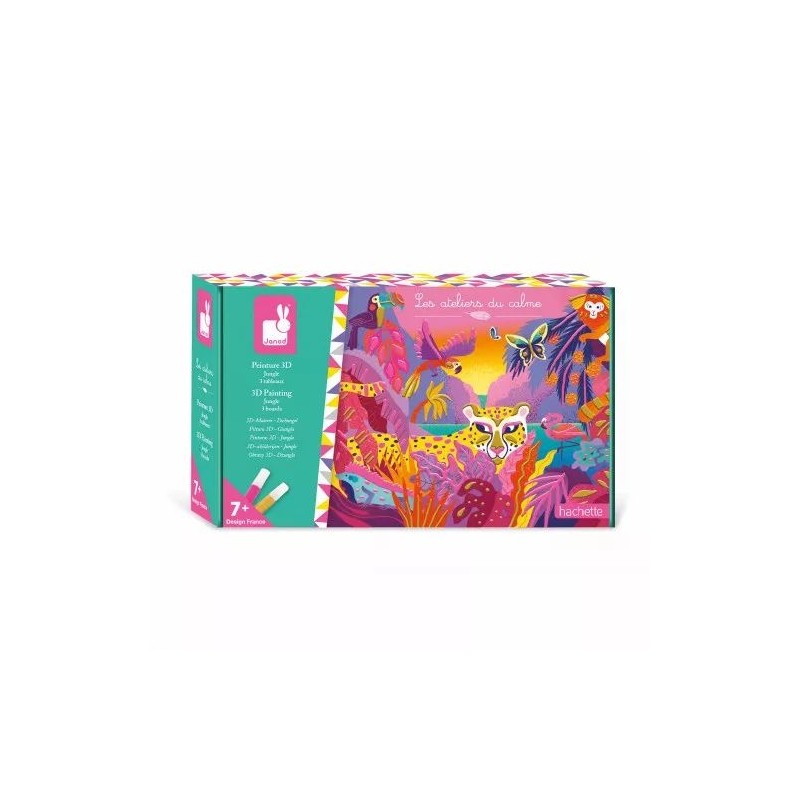 Magnifiques ambiances colorées pour les 3 tableaux de ce kit créatif pour les enfants à partir de 7 ans ! C'est parti pour l'exploration en pleine jungle à l'aide de cette activité de peinture 3D. À l'aide du livret pas à pas, les petits artistes devront compléter les 3 tableaux en utilisant les tubes de peinture spéciale dorée et rose fluo qui feront des scènes en relief. Il faut environ 2h pour réaliser les 3 tableaux. Cette activité permet de développer la précision et la motricité fine.