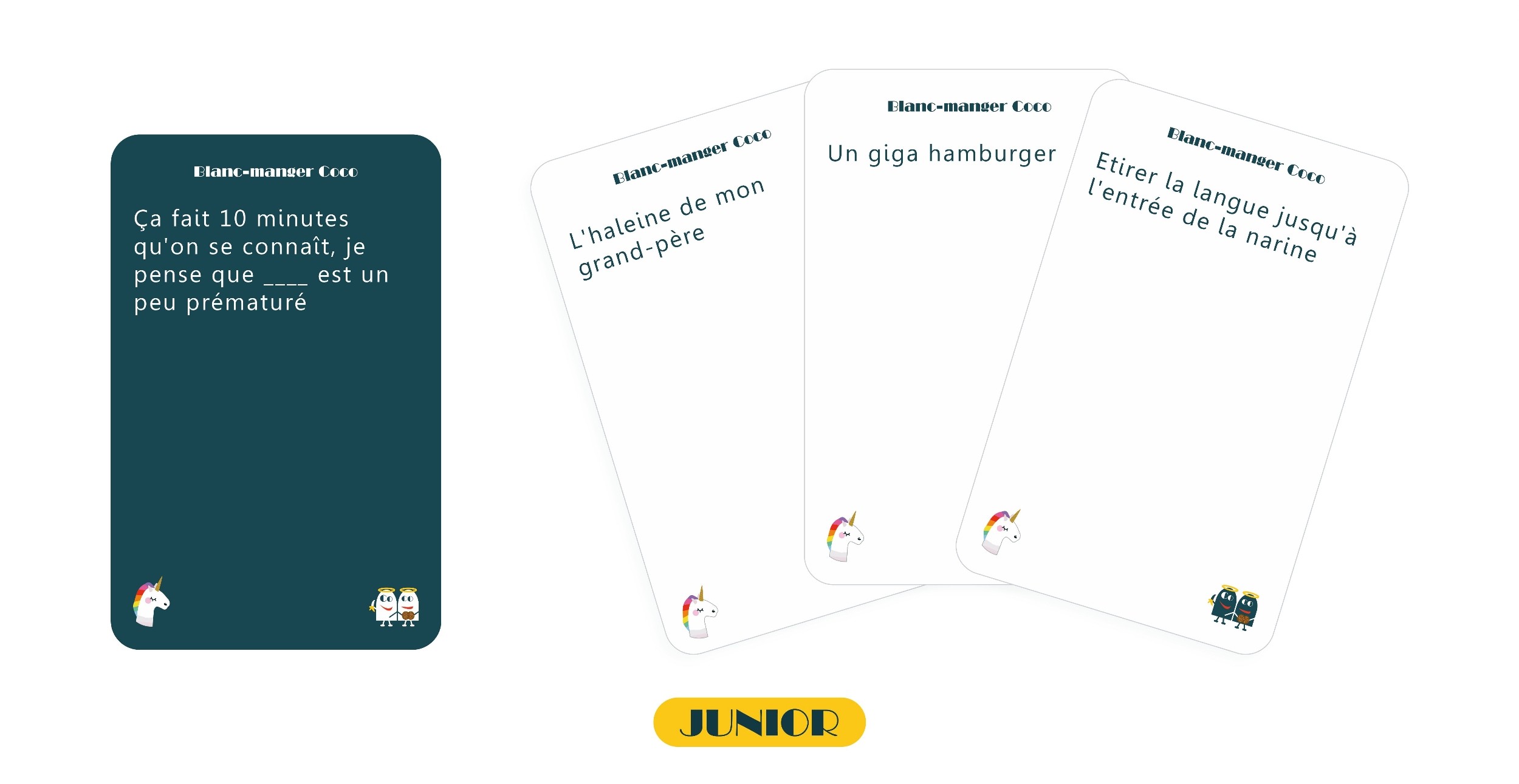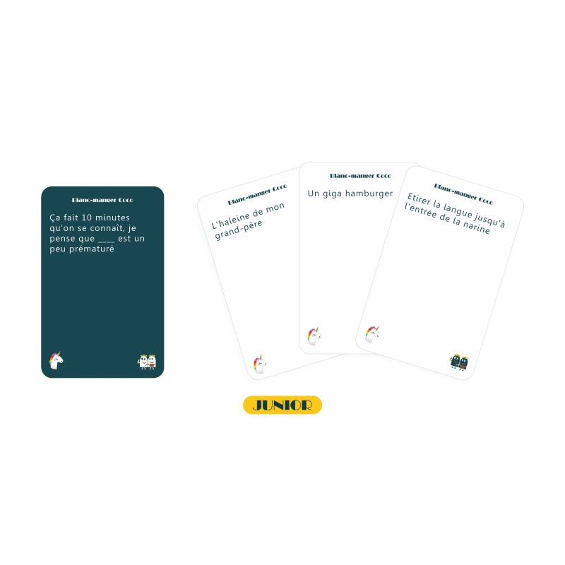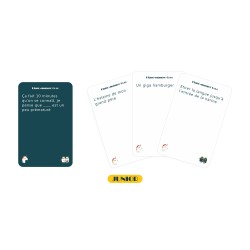 Un joueur est désigné « question master » et lit une carte bleue avec une phrase à trou(s), tous les autre joueurs posentune carte blanche.Celui qui a posé la carte la plus drôle gagne la manche puis lit la carte bleue suivante et ainsi de suite. Le premier joueur à 5 points est l'heureux vainqueur !