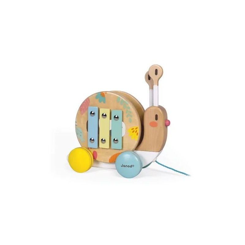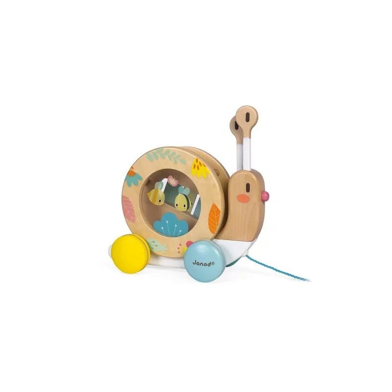Petit escargot, porte sur son dos, sa maisonnette ! Cet escargot rigolo en bois à promener et aux jolies couleurs printanières va amuser les tout-petit dès 1 an. La coquille tourne lorsqu'on le promène et s'enlève pour révéler un tambourin et un petit xylophone ! Les antennes de l'escargot sont également amovibles et deviennent des baguettes pour tapoter sur le xylophone et le tambourin. Ce joli jouet premier âge deviendra le compagnon préféré de votre bébé, l'éveillera à la musique de façon ludique et l'incitera à se déplacer. Grâce à sa petite taille, votre enfant pourra l'emmener partout, en vacances ou encore chez tonton et tata. Ce jouet est à peint à la peinture à l'eau, votre enfant peut le porter à sa bouche en toute sécurité.