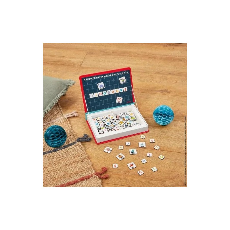 Les Magnéti'Book sont des jeux éducatifs malins qui se transportent partout et se rangent facilement ! Ces jolis coffrets en carton rigide renferment le nécessaire pour s'amuser grâce à des aimants et un plan incliné où les enfants vont pouvoir faire et défaire leur création à l'infini ! Ce Magnéti'Book consacré à l'alphabet est un support idéal pour les enfants à partir de 3 ans qui se familiarisent avec les lettres ! On joue à reconnaitre les voyelles et les consonnes, puis on forme ses premiers mots en s'aidant des magnets images. L'apprentissage des sons et la construction des mots devient un vrai plaisir avec ce jeu éducatif. Le coffret contient 26 magnets illustrés et 116 lettres de l'alphabet magnétiques comprenant les accents pour toutes les combinaisons possibles ! Une super idée cadeau pour les enfants en maternelle ! Ce produit est composé de matériaux certifiés FSC® et de matériaux contrôlés.
