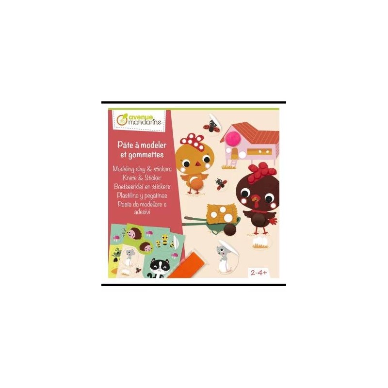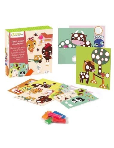 Découvrez le coffret créatif Pâte à modeler et gommettes d'Avenue mandarine, un coffret d'activités pour les enfants à partir de 2 ans sur le thème de la ferme.