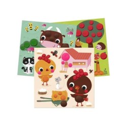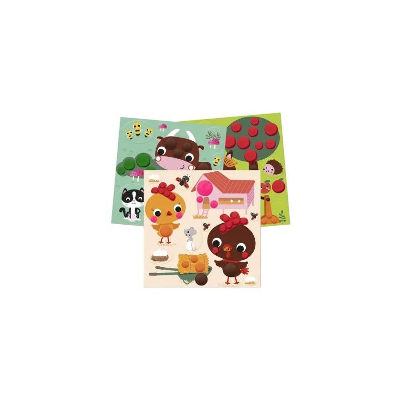 6 tableaux de la ferme à compléter de pâte à modeler et de gommettes. Idéal pour développer la motricité des tout petits!