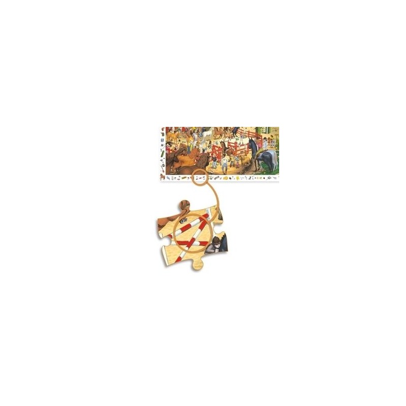 Un puzzle découverte de 200 pièces pour découvrir l'univers du centre équestre pour les passionnés d'équitation. L'enfant crée son puzzle puis s'amuse à retrouver dans l'image les éléments de la frise.