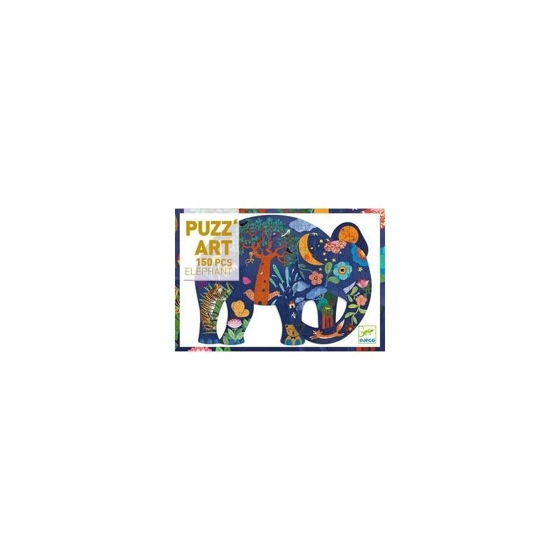 Le Puzz'Art Elephant est un puzzle de 150 pièces. Dans un format inédit, sans coin ni bordure, tout l'art du puzzle est bousculé. L'enfant découvre à travers cette grande silhouette ajourée un éléphant, dans lequel fourmille un monde imaginaire.