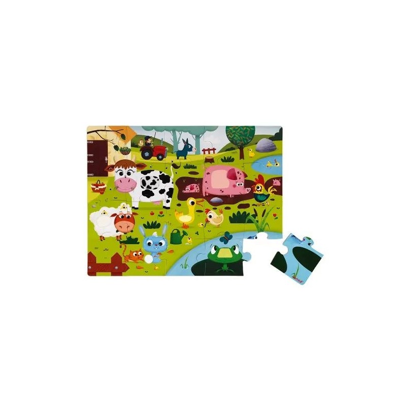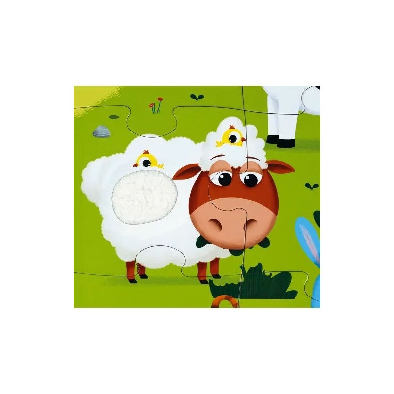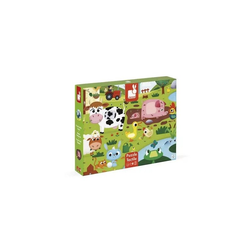 Les enfants vont adorer ce puzzle tactile géant sur le thème des animaux de la ferme. Ils feront travailler leur sens en touchant et en découvrant les matières et couleurs placées sur les animaux : pelage de la vache, du mouton, imitation queue du lapin, duvet du canard, la crête du coq, … Contient un poster servant de modèle. Puzzle : 65 x 50 cm. Nombre de pièces : 20, 7 pièces texturées. Ce produit est composé de matériaux certifiés FSC® et de matériaux contrôlés.