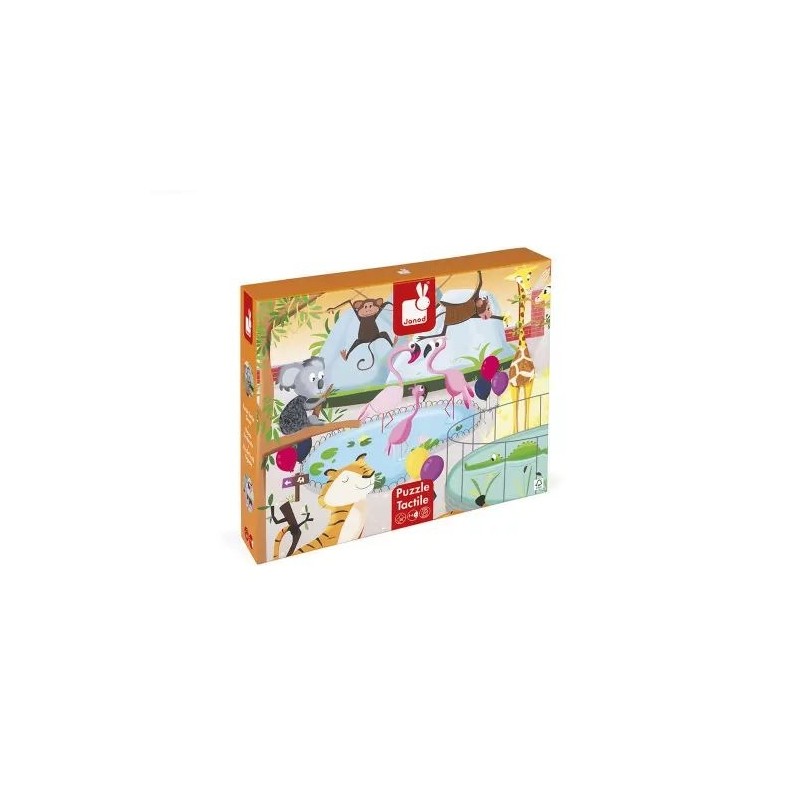 Partons à la découverte des animaux du zoo au travers d'un puzzle de 20 pièces destiné aux enfants à partir de 2 ans ! Son plus ? Il est tactile ! Quel joie de pouvoir découvrir le doux pelage du tigre ou la peau rugueuse du crocodile une fois le puzzle terminé ! On caresse et on découvre ces matières amusantes pour développer son sens du toucher ! Les belles illustrations de ce puzzle géant aux couleurs vives plongent dans un univers dépaysant aux détails amusants. Dans ce puzzle, un poster sert de modèle afin que les enfants puissent tout de suite s'amuser en toute autonomie. Ce puzzle mesure 65 x 50 cm une fois reconstitué et bénéficie de 7 pièces texturées.