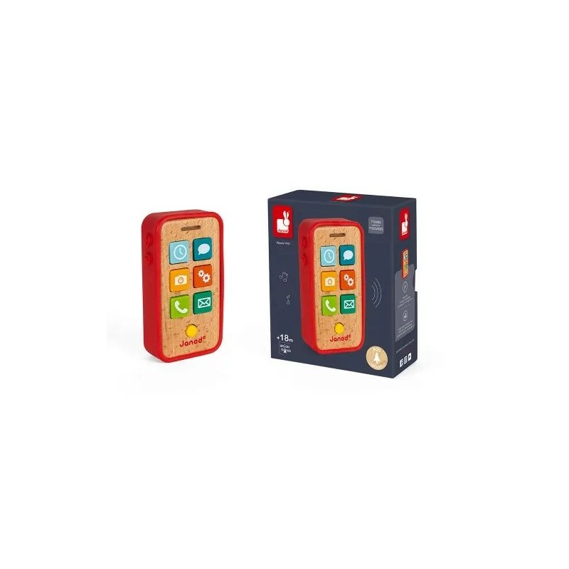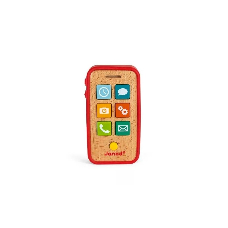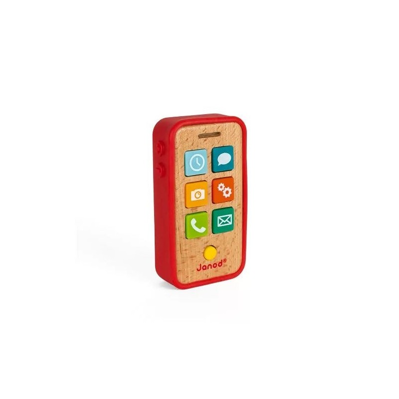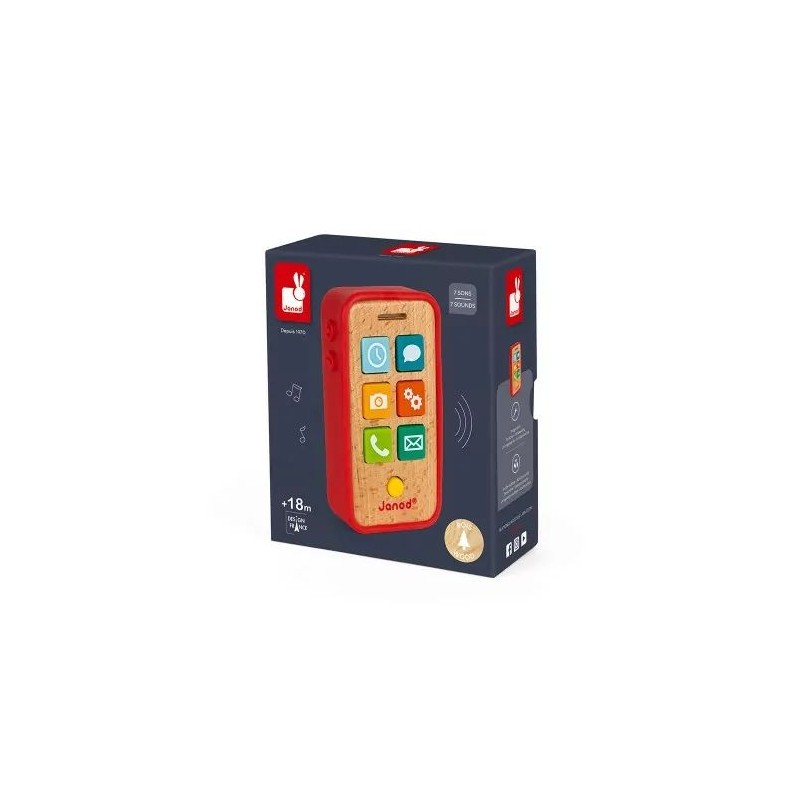C'est bien connu, les enfants adorent nous imiter quand on parle au téléphone ou lorsqu'on utilise la télécommande, alors pourquoi ne pas leur offrir leur propre téléphone rien que pour eux ? Adapté aux enfants dès 18 mois, ce téléphone sonore en bois n'a rien à envier aux smartphones des adultes ! Avec ses 7 boutons en plastique souple qui produisent différents sons, votre enfant va pouvoir programmer un réveil, prendre des photos, consulter ses messages et passer des heures à discuter avec ses copains. Et parce qu'il faut prendre grand soin de ses affaires, le téléphone est protégé par une coque en silicone amovible. Quelles histoires ou grandes discussions votre enfant va-t-il imaginer aujourd'hui ?